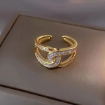 Anillo Abierto con Diamante Doble C y Circonita