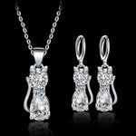 Conjunto de collar + aretes Happy Cats en plata y circonita blanca pulida