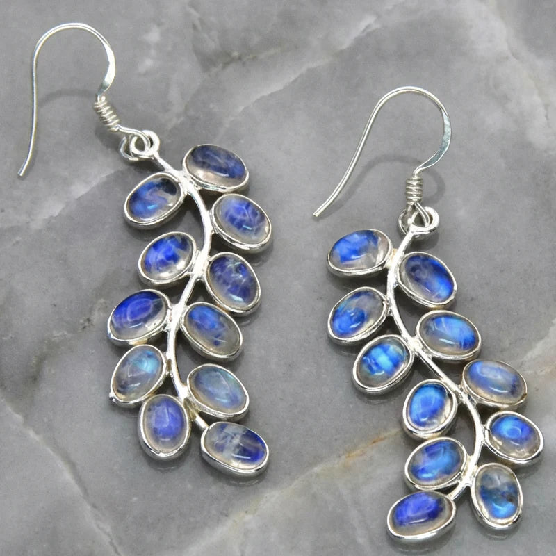 Hermosos pendientes de piedra lunar en forma de hojas de plantas