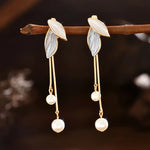 Pendientes Elegantes en Forma de Hoja con Perlas