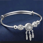 Pulsera Ajustable con Colgantes de Tres Hojas en Plata